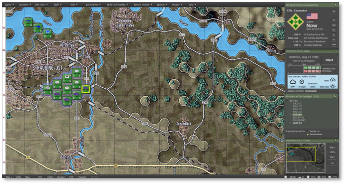 First, we will review the Mission Overlay to understand the battlefield layout better. From the Menu, select “Staff,” then choose “Import Mission Graphics from Briefing” to display the provided graphics.