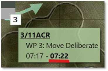 This will adjust the pathing as seen in the image below. This is a better movement and end location pathing. Units will get there near 07:18 hours.