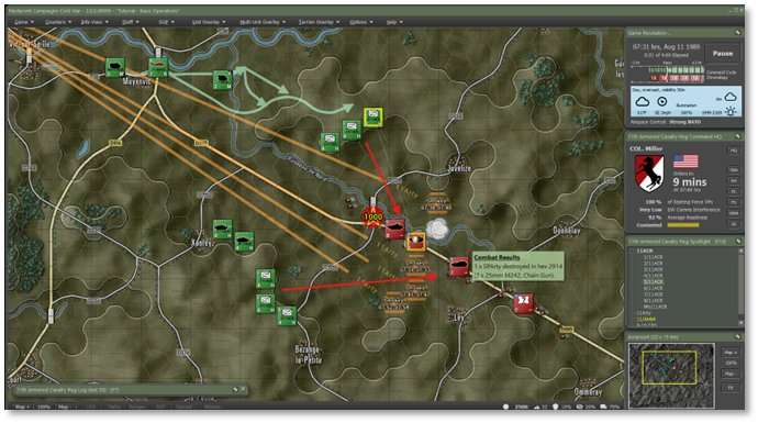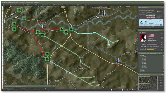As seen below four or so minutes have elapsed and the units have covered about 3.5 kilometers of ground as seen below.