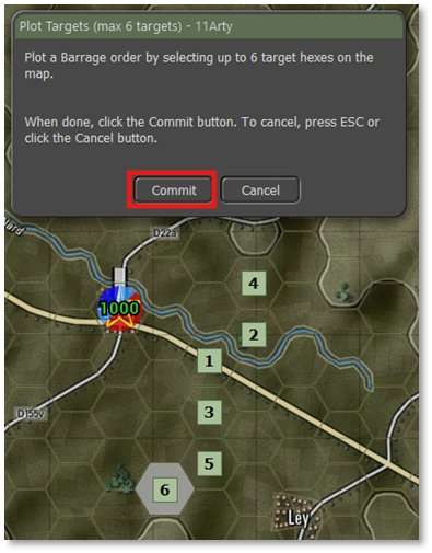 Select 11Arty. Right click on the unit and then select Barrage and then select Smoke – Visual Blocking. This will open the Plot Targets dialog.