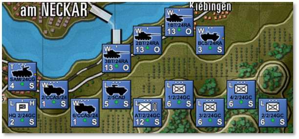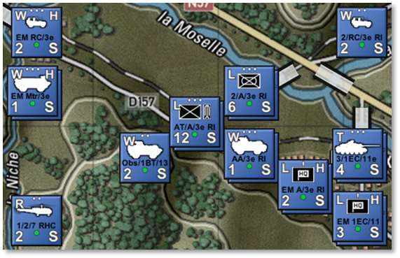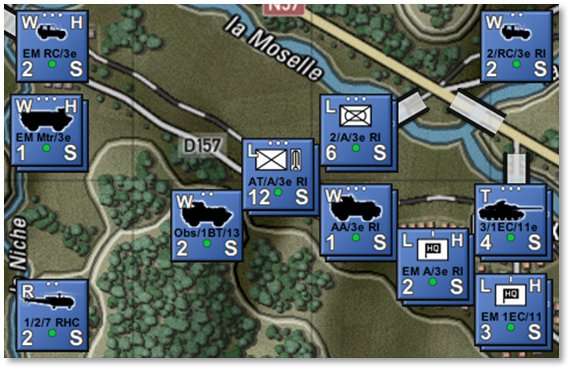 Show NATO Unit Counters [Ctrl+I]– Displays NATO markers in place of the vehicle silhouettes on all counters. Default silhouette counters are shown on the left below, and NATO counters are to the right. For a rundown of NATO symbols and their meaning, refer to FM02 Battlefield Primer. -