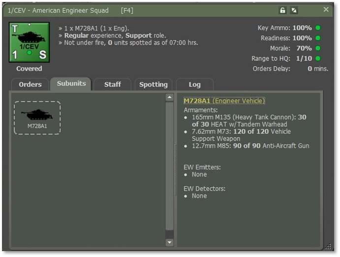 Before initiating any engineering operations, it is critical to assess the capabilities and limitations of your engineering units. Review the assigned engineer assets, including combat engineer platoons, engineer squad vehicles, and specialized equipment such as AVLBs, CEVs, and demolition charges. Verify their readiness levels, current orders, and position on the map to ensure they are correctly positioned to execute breaching, clearing, or demolition tasks. Understanding the strengths and weaknesses of each asset will enable you to plan and allocate resources for upcoming operations effectively, whether it involves breaching minefields, clearing obstacles, or demolishing key infrastructure.