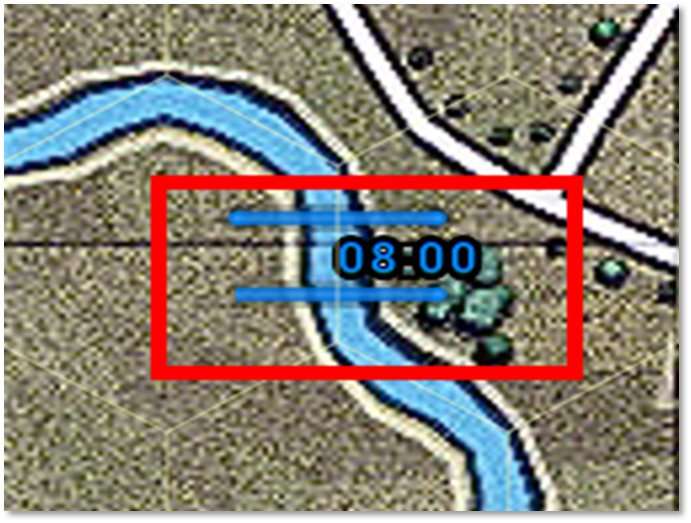 The map marker indicating that the bridge is being constructed can barely be seen. Here is an example of what a map building marker looks like with the completion time (the one in the Tutorial should be around 8:00) as shown below.