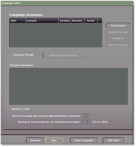 If you need to remove a scenario that you don’t want in the Campaign highlight it and then use the “Remove Scenario” button.