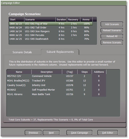 Once you have selected the hours of resupply and the ammo levels select the “Subunit Replacements” tab