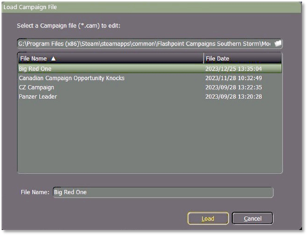 Highlight the “Campaign Scenario” name for this example “Big Red One” and then select the “Load” button.
