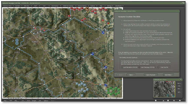For this example, I am going to edit a scenario called “Brothers in Arms”. As the information notes, it is a small scenario featuring Cold War American, West-German and East-German units. Click “Load” to load the scenario.