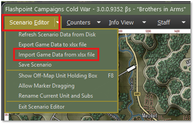 It is important to load up the correct scenario for the datafile that you are trying to import. The import will replace the unit’s data with a different scenario/map combination. The best way to avoid an issue is to leave the scenario up while the editing to the Excel file is being done. That also helps see units, locations, and other items helpful to the editors.
