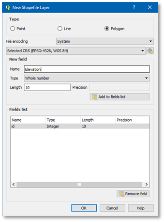 Define a new field (to hold the elevation): by filling out the New Field area with name Elevation, type Whole Number. The default length (10) suffices.
