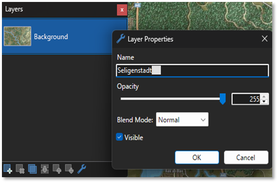 Rename the layer by double-clicking on the layer labeled Background. Use Base Map, or the name of the map that you're using, or the name of the scenario. Click the Ok button when finished. Refer to Figure 5.1.4: Rename Layer