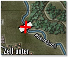 If you destroy a bridge, a red cross will appear over the bridge. This bridge is no longer capable of allowing units to pass over it as illustrated in Figure 20.