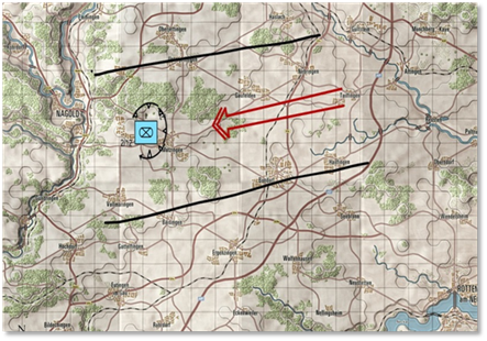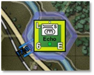 To add a map marker, click on it in the dialog and drag it to the hex you want on the map as illustrated in Figure 12. Most markers cannot be placed on each other. The exceptions are markers like smoke, gas, and NBC effects. These markers can be placed over hex and hex edge markers.
