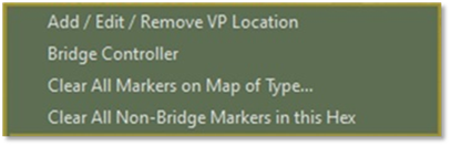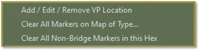 - Placing VPs – To place a VP marker on the map, right-click in the target hex and select “Add/Edit/Remove VP Location” from the Popup Menu as illustrated in Figure 13.
