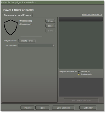 Second or Subsequent Scenario in Campaign – Select this option if you are working on any additional scenarios for an established campaign. Once selected, the Load Core Campaign Forces will be enabled, and you can click this to load the core forces for the campaign you are working on.