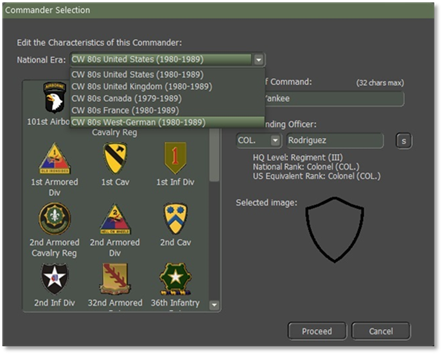 The game data is focused on 1980 to 1989. Setting dates outside of this range will result in not being able to fill formations with equipment, as available dates can be exceeded.