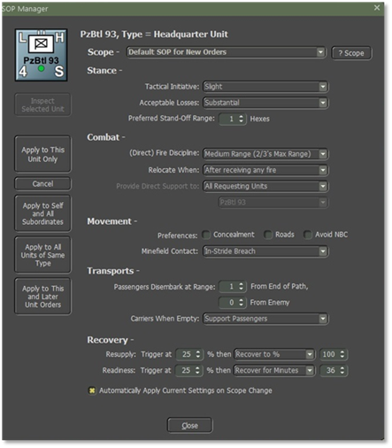 By selecting “Apply to all subordinate units of this unit” will apply to all the Panzer units in the company as shown in Figure 105.
