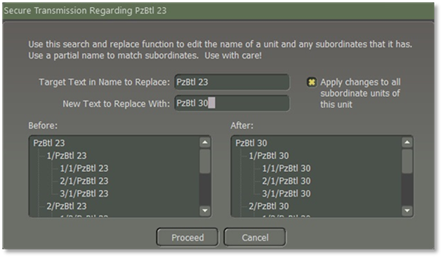 8. When you are done with your edits for the Briefing or Assessment click the “Proceed” button to save these edits or cancel to return to the Selection Dialog.