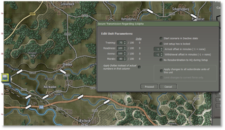 In the following sections, we will go through a step-by-step process of setting up a simple scenario with all the various types of units added inand the game setting adjusted.