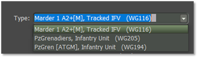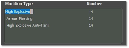 4. Munition Type: This is a list of the type of ammo that this unit is carrying as shown in Figure 115.