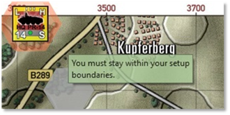 After Section 4.8 Deploying Forces on the Map, you can set up default zones. Figure 118 shows a highlighted unit with just a single setup. If you try to move the unit to a different location on the map you will get a popup on the map as shown in Figure 119.