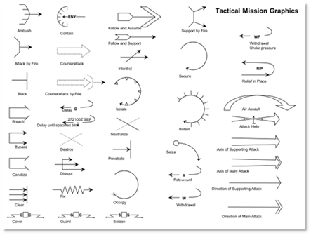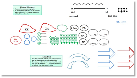 Once you copy the map, open PowerPoint. Paste the map into a PowerPoint (or an equivalent) slide. Draw a box with no fill over the map. Add the mission graphics like the ones shown in Figure 128, and Figure 129.