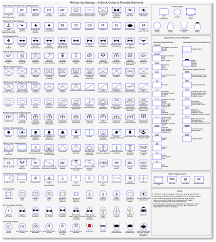 Figure 133 shows “Military Symbology – A Quick Guide to Friendly Elements” for reference when using the NATO symbol generator.