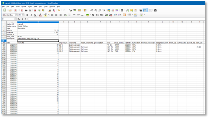 This section describes two ways of creating your own weather data. The first way is aimed at small amounts of weather data, can be performed manually, and is described in detail. It is a bit laborious though.