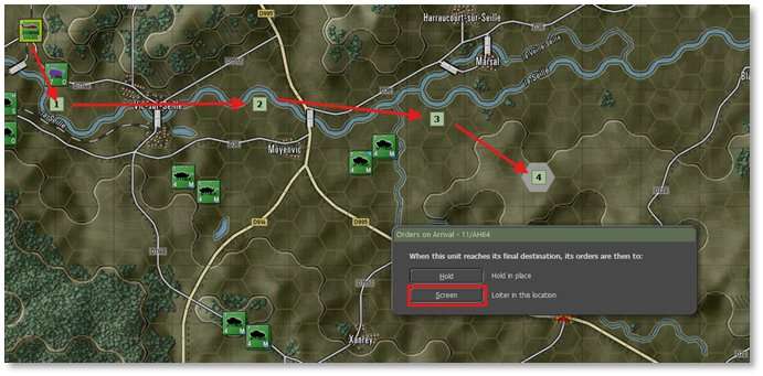 Then from the Orders on Arrival dialog, click on Hold to have the units dig-in and defend from the final locations.