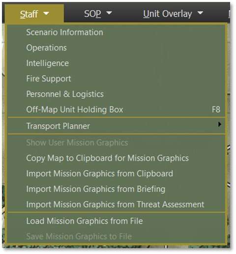 Import Mission Graphics from Briefing – Loads the pre-made mission graphic from your side’s Mission Briefing in the Operations Staff Report.