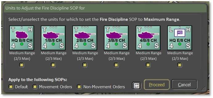 Your forces come with pre-existing SOPs so that adjusting these in detail is not required to start shooting or playing the game. There are many ways to customize and craft highly-tailored SOPs for more advanced players.