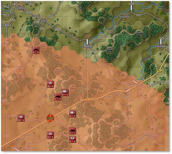 Units using Hasty Movement (i.e., favoring roads) move faster where there are roads and ignore the Mobility rating in favor of the type of road. It is represented by a truck symbol in the Status Bar’s hex information (see Section 12.2 below).