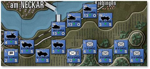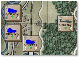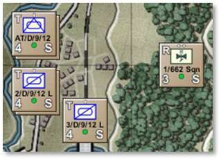 Show NATO Unit Counters [Ctrl+I]– Displays NATO markers in place of the vehicle silhouettes on all counters. Default silhouette counters are shown on the left below, and NATO counters are to the right. For a rundown of NATO symbols and their meaning, refer to FM02 Battlefield Primer. -