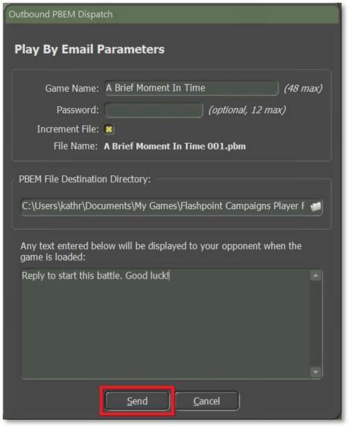 PBEM File Destination Directory – This is the folder on your computer where generated Play By Email (*.PBM) files are placed. You can change the location by clicking on the folder icon on the right of the text box.