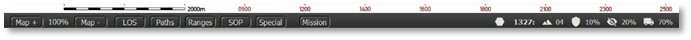 Ranges – Toggles the range rings on and off for a few features depending on the unit selected, such as Spotting, Spottable, weapons’ Max and Effective ranges, and if the unit is a headquarters, then the Command range overlay (see Section 11.7.7 above) is shown as well.