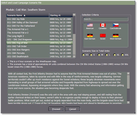 Here we will highlight and select the “US1 – SN1 Fog of War” scenario as the first scenario and then select “Proceed” which will return you to the Campaign Scenarios to load the next scenario until you have all the scenarios loaded.