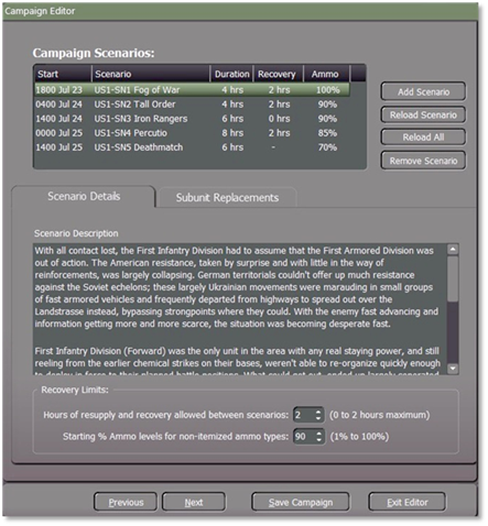 If you need to remove a scenario that you don’t want in the Campaign highlight it and then use the “Remove Scenario” button.