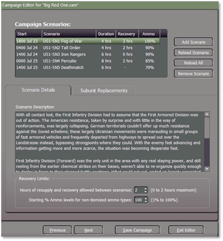 Highlight the “Campaign Scenario” name for this example “Big Red One” and then select the “Load” button.