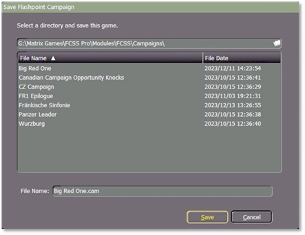 When you’re finished, then select the “Save Campaign” button which will cause the Save Flashpoint Campaign window to pop up.