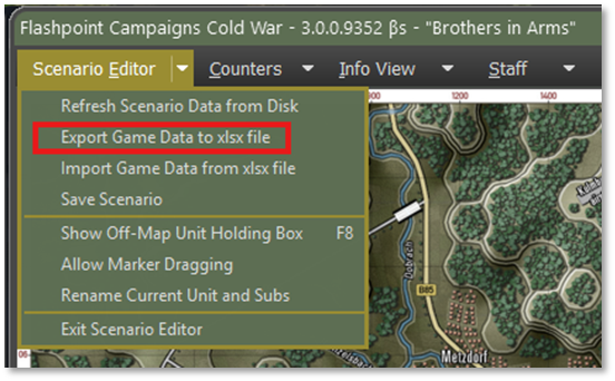 Now, go to the Top Menu and click on “Scenario Editor” and then click on “Export Game Data to XLSX file”.