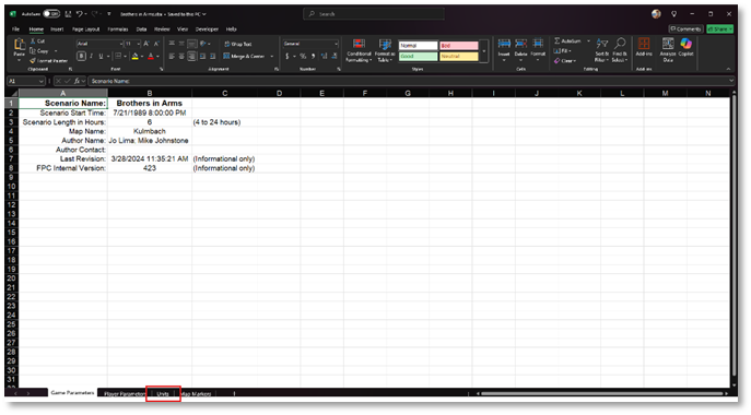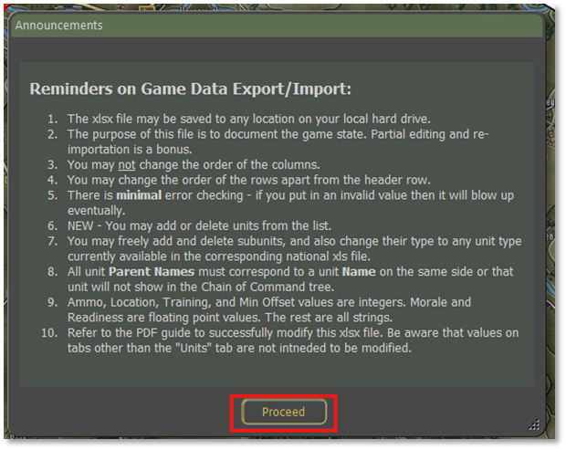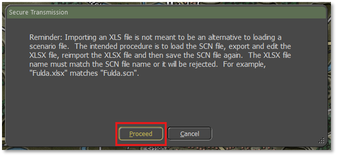 It is important to load up the correct scenario for the datafile that you are trying to import. The import will replace the unit’s data with a different scenario/map combination. The best way to avoid an issue is to leave the scenario up while the editing to the Excel file is being done. That also helps see units, locations, and other items helpful to the editors.
