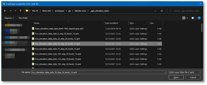 We do so by using QGis to tell us about the actual elevation in the Minden area, and select the most appropriate style from the preset styles.