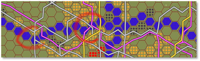 One thing to keep in mind is that built-up terrain is given high mobility values, almost as high as road hexes, so there is no need to draw a dense road network in built-up areas.