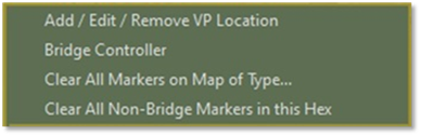 - Placing VPs – To place a VP marker on the map, right-click in the target hex and select “Add/Edit/Remove VP Location” from the Popup Menu as illustrated in Figure 13.