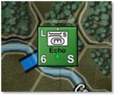 To add a map marker, click on it in the dialog and drag it to the hex you want on the map as illustrated in Figure 12. Most markers cannot be placed on each other. The exceptions are markers like smoke, gas, and NBC effects. These markers can be placed over hex and hex edge markers.
