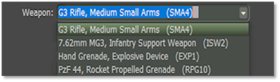 2. Weapon: List all the weapons that are in the Platoon as shown in Figure 113. Use the drop-down arrow to display a list of all the equipment for that platoon.