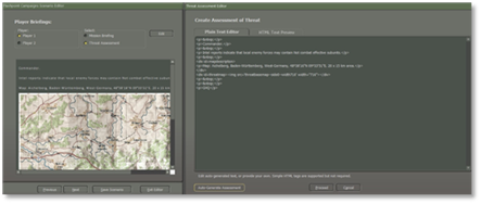 7. Clicking this button will Auto-Generate either a Briefing or Threat report based on the selections for the selected side based on our provided template. You can add, edit, or remove anything from these templates to fit the narrative of your scenario.