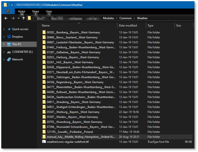 - Clone a weather station folder in the Flashpoint Campaigns folder, subfolder Modules\Common\Weather. Let us copy and paste the ‘00282__Bamberg__Bayern__West-Germany’ folder and rename the copied folder. ‘manual_July__Middle_Wallop_Hampshire__United-Kingdom’. The exact name does not really matter, but why not indicate that the data was manually created for July and that we will obtain it from the Middle Wallop airfield weather station.