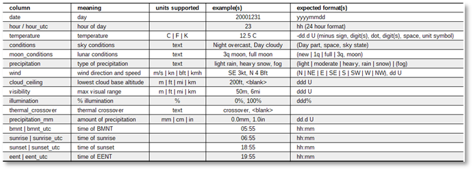 The ‘hour_utc’, ‘bmnt_utc’, ‘sunrise_utc’, ‘sunset_utc’, and ‘eent_utc’ column names are being replaced by just ‘hour’, ‘bmnt’, ‘sunrise’, ‘sunset’, and ‘eent’, to avoid the suggestion these are time zone specific.